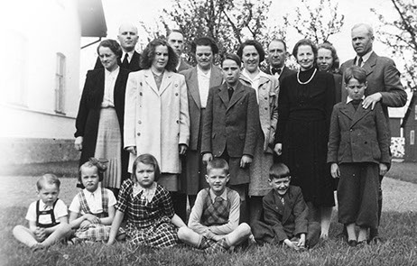 och folkskollärare Erik Espling, Svalöv (Reijos fosterföräldrar) Astrid Larsson (med vitt halsband) bakom henne dottern Ingrid, bredvid agronom Axel Larsson, Svalövsgården samt framför honom sonen Göran (Raimos fosterföräldrar). SISARUKSET ASTIKAINEN