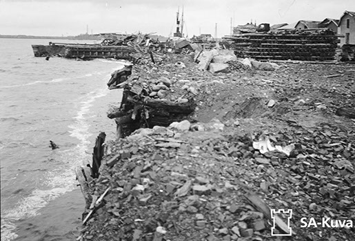 Hamnen i Kemi helt sönderbombad. SA-bild den 21 oktober 1944.