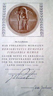 tuli oletettavasti Suomen Sosiaaliministeriöltä. Mitali oli Suomen valtion virallinen